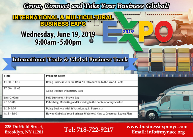 The International & Multicultural Business Expo promises to be high-energy and impactful. The day starts with a Welcome VIP Breakfast, and continues with 20 empowering seminars, an exhibiting hall of businesses and a Networking Luncheon. During the day, attendees will have the opportunity to network with other businesses and share information about their products and services as well as attend 20+ FREE educational seminars and workshops. These include Equity Smart Realty Inc. Real Estate Track, Doing Business with the UN and Battery Park, Marketing Strategies for Your Business and much more! Presenters will be top business experts and representatives from State and Federal agencies. For registration of seminars and more information, please visit Business Expo NYC.